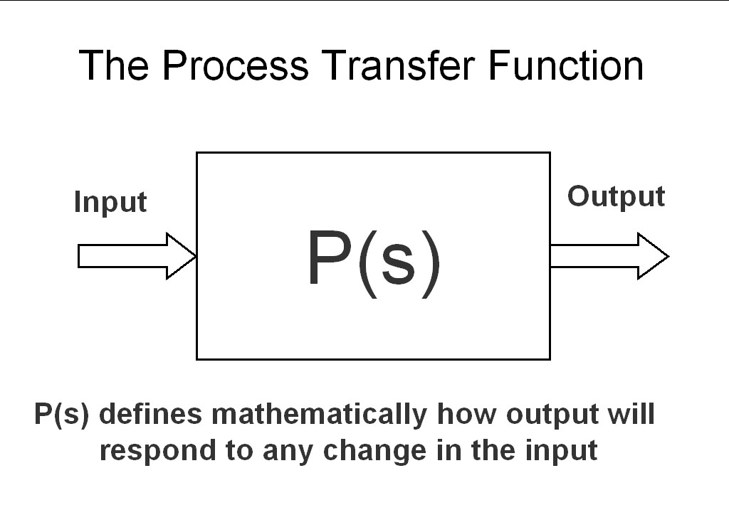As shown in Figure 1 a process transfer function is merely a mathematical function describing how the output of a process will respond to any change on the input to that process. It is literally and simply a mathematical description of the process.