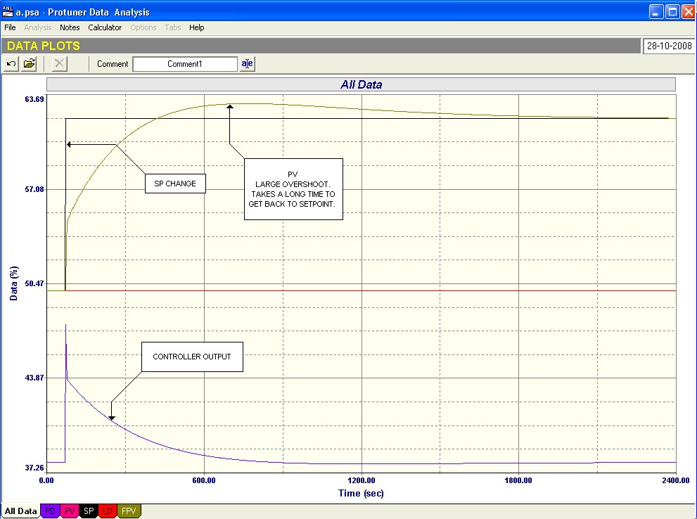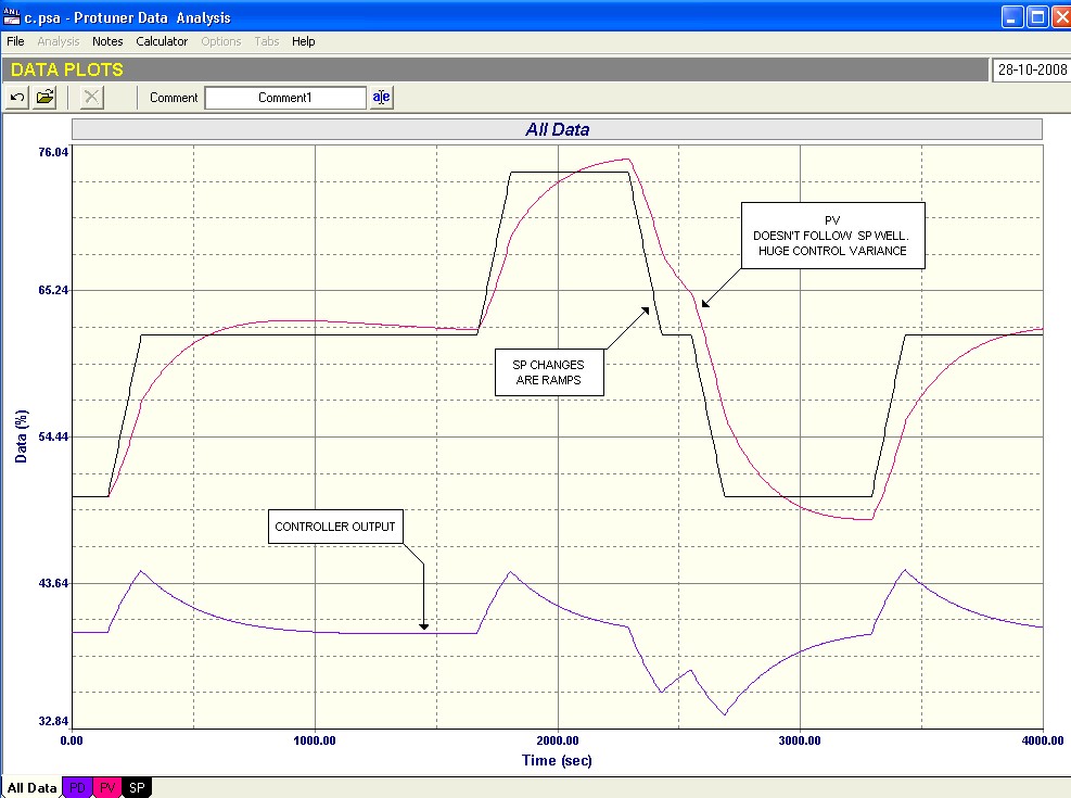 Firstly as a general rule one does not normally make many set-point step changes during normal plant operation in the typical continuous process type plant. The ones I am always showing in these articles are generally only made when testing tuning response. The vast majority of controllers are there to keep processes on setpoint during load changes, and in some cases, to follow remote setpoints from advanced control schemes. These are both normally really slow moving. Secondly if you don’t have reasonably fast tuning to keep control variances to a minimum, then you are not going to have good control. (Remember that fast tuning means fast response, and does not mean cyclical responses with over and undershoots. The majority of the loops I tune are generally around critical damping, with no overshoot at all, and most of these tunings are dramatically faster than the original “as-found” tuning.)